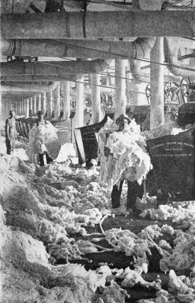 The Cane-Sugar Makers. If we travel in a direction a little east of south from the wheat-fields of Canada, we come to the great plantations of Louisiana and Mississippi19 where sugar-cane is grown. Here we find people of a different type living under different conditions. Sugar-cane is grown in fields that have been won from the swamps by hard toil. In this rich soil, cultivated and ridged by the plow, the sugar-cane is laid in long parallel rows. After it has been buried a few days it begins to sprout, and from each one of the joints on the stalk of cane there grows up a new plant. These are tilled and come to maturity in October. The stalks grow from eight to fifteen feet high and at harvest-time are cut down and then stripped of their leaves by the workers, who take them up in their hands and with a flat knife slash off the long, bladelike leaves, leaving them clean and smooth. The stalks are piled in rows to be picked up later and put into wagons, taken to the siding, loaded into freight-cars, and hauled to the mill, where they are crushed between rollers, and the juice pressed out. The liquid so obtained is then put into large vats and evaporated, leaving brown sugar and molasses. The crude or brown sugar is sent to the refinery and passed through various processes until we get the white sugar that comes to our tables. Practically all of the work on the sugar plantation is done by Negroes. These people live in small cabins and work for a very small wage, ranging from 75 cents to a $1.25 a day. Their tiny houses, which are usually whitewashed and surrounded by a little plot of ground, are the property of the owners of the plantation. The Negro is expected to buy everything from the company’s stores. The prices are high and it is rarely that one finds a family that is not in a perpetual state of debt to the owner of the plantation.