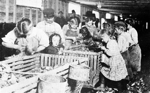 The beet-fields call whole families to work. Several towns in the Northwestern states have sections made up entirely of Russians, and people from other lands, who have been attracted by the opportunities for employment offered by the beet industry. One family consisting of a father, mother, thirteen children, and the mother’s sister21 worked all last summer in one of the beet-fields. The youngest child was only five years old but he put in long hours every day. This family is typical of many. The statistics regarding child labor in the United States show that the vast majority of children employed in gainful labor are the children in the rural districts. Thus sugar comes to your table through two sources: from the workers, including a large number of children, in the beet-fields and the workers on the Southern plantations.