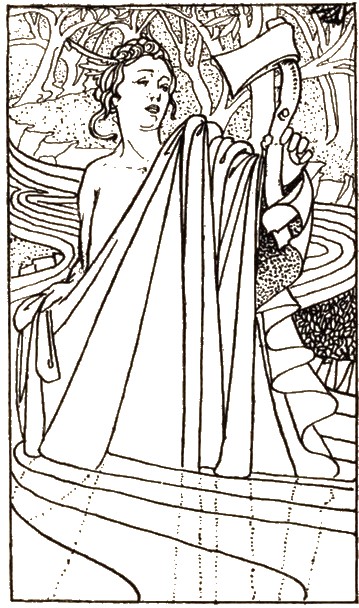 "That is mine!" said the Woodman, delighted to have his own again. Mercury was so pleased with his honesty that he made him a present of the other two, as a reward for his just dealing.