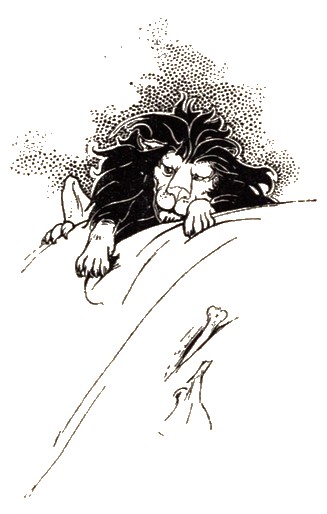 A lion was sleeping in his lair, when a Mouse, not looking where he was going, ran over the mighty beast's nose and awakened him. The Lion clapped his paw on the frightened little creature, and was about to make an end of him in a moment, when the Mouse, in pitiable tone, begged him to spare one who had done him wrong without being aware. The Lion looking kindly on his little prisoner's fright, generously let him go. Now it happened, no long time after, that the Lion, while ranging the woods for his prey, fell into the toils of the hunters; and finding himself entangled without hope of escape, set up a roar that filled the whole forest with its echo. The Mouse, quickly recognising the Lion's voice, ran to the spot, and without more ado set to work to nibble the knot in the cord that bound him, and in a short time, set him free; thus showing him that kindness is seldom thrown away, and that there is no creature so much below another but that he may have it in his power to return a good deed.