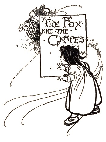 A fox, very hungry, chanced to come into a vineyard, where there hung many bunches of charming ripe grapes; but nailed up to a trellis so high, that he leaped till he quite tired himself without being able to reach one of them. At last, "Let who will take them!" says he; "they are but green and sour; so I'll even let them alone."