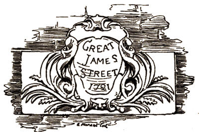 [108] The plan of the garden seemed to show that it had been curtailed when the houses to the east, Nos. 15 to 18, Austin Friars, were erected. They were formerly called Winckworth Buildings, and on their water-pipes were t w, 1726. In No. 18, James Smith, one of the authors of ‘Rejected Addresses,’ lived for a time. These houses are all now swept away.