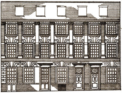 [76] There is a view of it in Strype’s Stow (1754), which shows a sculptured phœnix over the doorway. The phœnix in the porch of No. 40, Great Ormond Street suggests the possibility of some connection with this house.