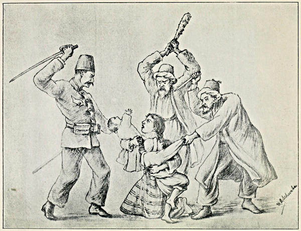 Further in answer to Ahmed Riza Bey’s account of the Armenian “prétendus patriotards” in connection with the Ottoman Bank; I cannot do better than quote from Mr. Bryce’s version of the story, and the massacre that followed: “In the following June serious trouble arose at Van, where some sort of insurrection is said to have been planned, though in the discrepancy of the accounts it is hard to arrive at the truth. Masses of Kurds came down threatening to massacre the Christians, and a conflict in which many innocent persons perished, was with difficulty brought to an end by the intervention of the British Consul. A little later the Armenian revolutionary party, emboldened by the rising in Crete, where the Christians, being well armed and outnumbering the Muslims, held their ground successfully, issued appeals to the Embassies and to the Turkish Government to introduce reforms, threatening disturbances if the policy of repression and massacre was persisted in. These threats were repeated in August, and ultimately, on August 26, a band of about twenty Armenians, belonging the revolutionary party, made a sudden attack on the Imperial Ottoman Bank in Constantinople, declaring they were prepared to hold it and blow it up should the Sultan refuse their demand. They captured the building by a coup de main, but were persuaded by the Russian dragoman to withdraw upon a promise of safety. Meanwhile the Government, who through their spies knew of the project, had organised and armed a large mob of Kurds and Lazes—many of whom had recently been brought to the city—together with the lowest Turkish class. Using the occasion, they launched this mob upon the peaceful Armenian population. The onslaught began in various parts of the city so soon after the attack on the Bank that it had obviously been prearranged, and the precaution had been taken to employ the Turkish ruffians in different quarters from those in which they dwelt; so that they might less easily be recognised. Carts had moreover been prepared in which to carry off the dead. For two days an indiscriminate slaughter went on, in which not only Armenian merchants and traders of the cultivated class, not only the industrious and peaceable Armenians of the humbler class, clerks, domestic servants, porters employed on the quays and in the warehouses, but also women and children were butchered in the streets and hunted down all through the suburbs. On the afternoon of the 27th the British Chargé d’Affaires (whose action throughout won general approval) told the Sultan he would land British sailors, and the Ambassadors telegraphed to the Sultan. Then the general massacre was stopped, though sporadic slaughter went on round the city during the next few days. The Ambassadors, who did not hesitate to declare that the massacre had been organised by the Government, estimated the number of killed at from 6000 to 7000; the official report[16] made to the Sultan is said to have put it at 8750.[1] During the whole time the army and the police had perfect control of the city—the police, and a certain number of the military officers and some high civil officials, joining in the slaughter. Of all the frightful scenes which Constantinople, a city of carnage, has seen since the great insurrection of A.D. 527 when 30,000 people perished in the hippodrome there has been none more horrible than this. For this was not the suppression of an insurrection in which contending factions fought. It was not the natural sequel to a capture by storm, as when the city was taken and sacked by the Crusaders in A.D. 1204, and by the Turks in A.D. 1453. It was slaughter in cold blood, when innocent men and women, going about their usual avocations in a time of apparent peace, were suddenly beaten to death with clubs, or hacked to pieces with knives, by ruffians who fell upon them in the streets before they could fly to any place of refuge.”[2]