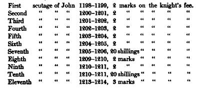 But there is another piece of evidence which points to the National Council itself giving assent to taxation. In the Chronicle of the Monastery of Abingdon occurs a quotation of an order from Henry to his officers exempting the lands of a certain abbot from the payment of an “aid which my barons have given me.”[25] Whether or not this statement can be taken as substantiating the theory of assent depends upon a point of time; was the gift of the barons before or after the laying of the tax?In the National Council If the gift was indeed prior to the levy, then the evidence is conclusive that the barons assented to taxation; if, on the other hand, the barons gave the aid after the levy [23]had been made, the statement refers solely to the actual payment of the tax. The tense of the Latin verb, however, and the circumstances in which the king writes, seem to point to the former alternative; Henry directs that the Exchequer exempt the abbot’s lands from the collection of an aid, not which the barons were giving him, but which they have given him. It is possible to infer, then, that sometimes, at least, the barons formally assented to the levying of an extraordinary aid.