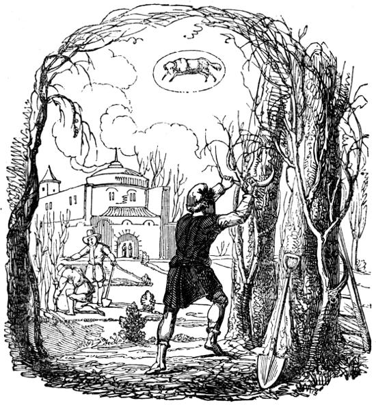 Referring for the “New-year’s gifts,” the “Candlemas-bull,” and various observances of our ancestors and ourselves, to the first volume of this work, wherein they are set forth “in lively pourtraieture,” we stop a moment to peep into the “Mirror of the Months,” and inquire “Who can see a new year open upon him, without being better for the prospect—without making sundry wise reflections (for any reflections on this subject must be comparatively wise ones) on the step he is about to take towards the goal of his being? Every first of January that we arrive at, is an imaginary mile-stone on the turnpike track of human life; at once a resting place for thought and meditation, and a starting point for fresh exertion in the performance of our journey. The man who does not at least propose to himself to be better this year than he was last, must be either very good, or very bad indeed! And only to propose to be better, is something; if nothing else, it is an acknowledgment of our need to be so, which is the first step towards amendment. But, in fact, to propose to oneself to do well, is in some sort to do well, positively; for there is no such thing as a stationary point in human endeavours; he who is not worse to-day than he was yesterday, is better; and he who is not better, is worse.”