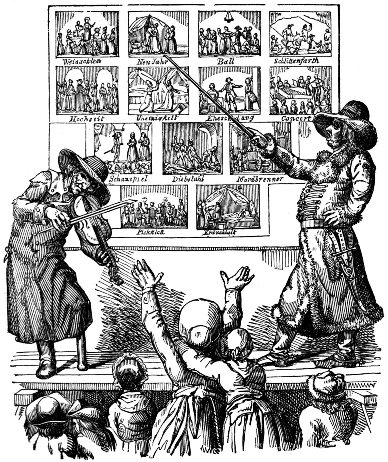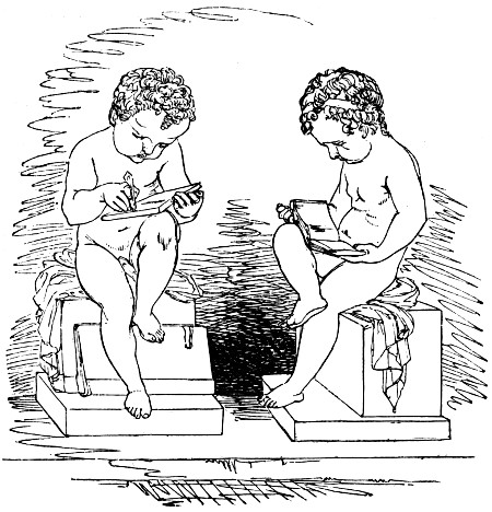 The author of the paragraph quoted above, expresses forcible remembrance of his youthful pleasures on the coming in of the new year.—“Hail! to thee, January!—all hail! cold and wintry as thou art, if it be but in virtue of thy first day. The day, as the French call it, par excellence, ‘Le jour de l’an.’ Come about me, all ye little schoolboys that have escaped from the unnatural thraldom of your taskwork—come crowding about me, with your untamed hearts shouting in your unmodulated voices, and your happy spirits dancing an untaught measure in your eyes! Come, and help me to speak the praises of new-year’s day!—your day—one of the three which have, of late, become yours almost exclusively, and which have bettered you, and have been bettered themselves, by the change. [7, 8] Christmay-day, which was; New-year’s-day, which is; and Twelfth-day, which is to be; let us compel them all three into our presence—with a whisk of our imaginative wand convert them into one, as the conjurer does his three glittering balls—and then enjoy them all together,—with their dressings, and coachings, and visitings, and greetings, and gifts, and “many happy returns”—with their plum-puddings, and mince-pies, and twelfth-cakes, and neguses—with their forfeits, and fortune-tellings, and blindman’s-buffs, and sittings up to supper—with their pantomimes, and panoramas, and new penknives, and pastrycooks’ shops—in short, with their endless round of ever new nothings, the absence of a relish for which is but ill supplied, in after life, by that feverish lingering and thirsting after excitement, which usurp without filling its place. Oh! that I might enjoy those nothings once again in fact, as I can in fancy! But I fear the wish is worse than an idle one; for it not only may not be, but it ought not to be. “We cannot have our cake and eat it too,” as the vulgar somewhat vulgarly, but not less shrewdly, express it. And this is as it should be; for if we could, it would neither be worth the eating nor the having.”[6]
