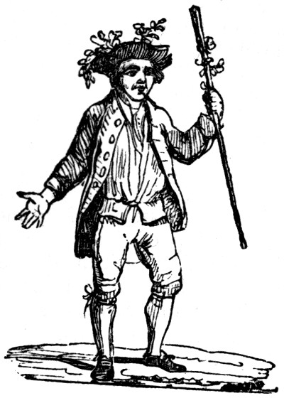 For instance: 1. from the notch which represents January 13th, on the feast of St. Hilary, issues a cross or badge of a bishop, as St. Hilary was; from March 1st, a harp, showing the feast of St. David, by that instrument; from June 29th, the keys for St. Peter, reputed the Janitor of heaven; from October 25th, a pair of shoes for St. Crispin, the patron of shoe-makers. Of class 2, are the axe against January 25th, the feast of St. Paul, who was beheaded with an axe; the sword against June 24th, [viii] the feast of St. John Baptist, who was beheaded; the gridiron against August 10th, the feast of St. Lawrence, who suffered martyrdom on one; a wheel on the 25th of November, for St. Catherine, and a decussated cross on the last of that month, for St. Andrew, who are said also to have suffered death by such instruments. Of the 3d kind, are the star on the 6th of January, to denote the Epiphany; a true lover’s knot against the 14th of February, for Valentine’s-day; a bough against the 2d of March, for St. Ceadda, who lived a Hermit’s life in the woods near Litchfield; a bough on the 1st of May, for the May-bush, then usually set up with great solemnity; and a rake on the 11th of June, St. Barnabas’-day, importing that then it is hay-harvest. So, a pot is set against the 23d of November, for the feast of St. Clement, from the ancient custom of going about that night to beg drink to make merry with: for the purification, annunciation, and all other feasts of our lady, there is always the figure of a heart: and lastly, for December 25th, or Christmas-day, a horn, the ancient vessel in which the Danes use to wassail, or drink healths; signifying to us, that this is the time we ought to rejoice and make merry.