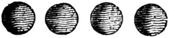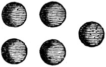 Against many of the notches there are placed on the left hand several marks or symbols denoting the golden number or cycle of the Moon, which number if under 5, is represented by so many points, or dots; but if 5, a line is drawn from the notch, or day, it belongs to, with a hook returned back against the course of the line, which, if cut off at due distance, may be taken for a V, the numeral signifying 5. If the golden number be above 5, and under 10, it is then marked out by the hooked line, which is 5; and with one point, which makes 6; or two, which makes 7; or three, for 8; or four, for 9; the said line being crossed with a broad stroke spreading at each end, which represents an X, when the golden number for the day, over against which it is put, is 10; points being added (as above over the hook for 5,) till the number arises to 15, when a hook is placed again at the end of the line above the X, to show us that number.
