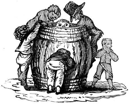 From the “Wassail” we derive, perhaps, a feature by which we are distinguished. An Englishman eats no more than a Frenchman; but he makes yule-tide of all the year. In virtue of his forefathers, he is given to “strong drink.” He is a beer-drinker, an enjoyer of “fat ale;” a lover of the best London porter and double XX, and discontented unless he can get “stout.” He is a sitter withal. Put an Englishman “behind a pipe” and a full pot, and he will sit till he cannot stand. At first he is silent; but as his liquor gets towards the bottom, he inclines towards conversation; as he replenishes, his coldness thaws, and he is conversational; the oftener he calls to “fill again,” the more talkative he becomes; and when thoroughly liquefied, his loquacity is deluging. He is thus in public-house parlours: he is in parties somewhat higher, much the same. The business of dinner draws on the greater business of drinking, and the potations are strong and fiery; full-bodied port, hot sherry, and ardent spirits. This occupation consumes five or six hours, and sometimes more, after dining. There is no rising from it, but to toss off the glass, and huzza after the “hip! hip! hip!” of the toast giver. A calculation of the number who customarily “dine out” in this manner half the week, would be very amusing, if it were illustrated by portraits of some of the indulgers. It might be further, and more usefully, though not so agreeably illustrated, by the reports of physicians, wives, and nurses, and the bills of apothecaries. Habitual sitting to drink is the “besetting sin” of Englishmen—the creator of their gout and palsy, the embitterer of their enjoyments, the impoverisher of their property, the widow-maker of their wives.