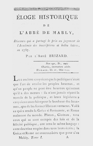 [a] Voy. pour cet ouvrage et les suivans, la notice des ouvrages de l’abbé Mably, dans les notes historiques sur cet éloge No. III.[3].