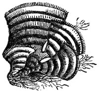 Among the Sea-Snails of our own coast, which are still eaten by the lower orders, is the Periwinkle, considered by some superior in flavour to the Oyster or Shrimp. This creature, the Littorina littorea, is one of the most useful creatures in an Aquarium, cleansing it from all decaying vegetation, which is its natural food. The Periwinkle varies much both in size and colour, the ground tone of the shell being sometimes red, orange, or even scarlet, sometimes with and sometimes without handsome black bands. Such as are coloured in this attractive manner should obviously be selected as inmates of the Aquarium, in preference to the dull-coloured varieties; and a few of the small yellow kind, Littorina littoralis, may be added by way of 74variety, though they do not succeed so well in confinement as the other species.