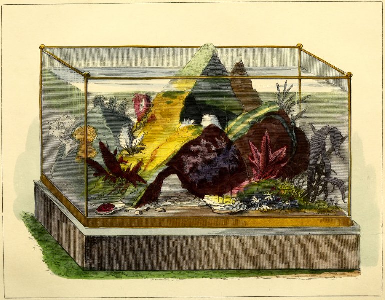 The best sand for the artificial beach, or bottom, is the Thames’ sand, used by builders; but this must be washed several times, till the water runs off quite clear, before it is fit for use—any other kind of sand, if that cannot be procured, must be submitted to similar washings. Sea-water can 107be procured by furnishing the steward or captain of any Thames steamer, or the guard of a railway in connection with the coast, with a clean barrel; the charge, in either case, for carriage and trouble, would not exceed two or three shillings.