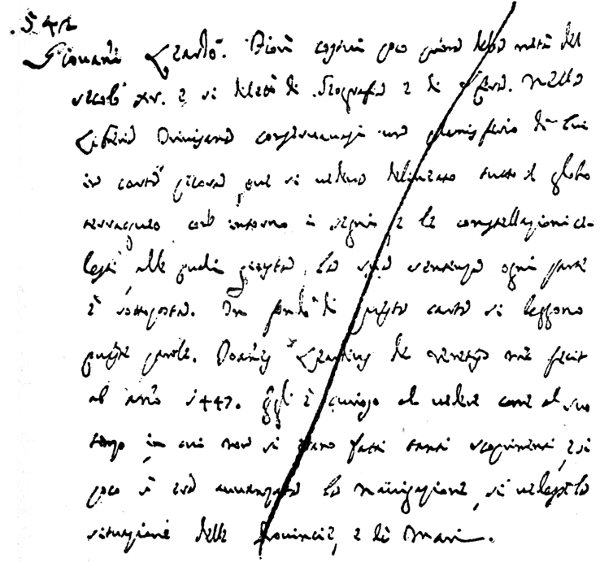 The passage from the Foscarini MS (Fig. 2) may be translated thus: “Gio. Leardo, who flourished in 1440, made a planisphere on parchment on which was written Leardius de Venetiis me fecit anno 1447. It was at the house of (era presso) Bernardo Trevisano. Apostolo Zeno saw it many times and marveled at seeing the exactness of the design.” The passage from the Agostini MS (Fig. 3) runs as follows: “Giovanni Leardo: This (man) lived shortly before the middle of the fifteenth century, and he delighted in geography and spheres. In the Trevisan Library was preserved a planisphere by him on parchment on which could be seen delineated the whole terraqueous globe with all the signs and celestial constellations, beneath which, according to his assertion, every part is placed. At the bottom of this parchment these words may be read: Joannes Leardius de Venetiis me fecit ab anno 1447. It is curious to see how in his time, when not many discoveries had been made and navigation was so little advanced, the positions of the provinces and of the seas were conceived.”