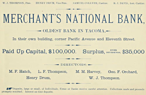 MERCHANT’S NATIONAL BANK, OLDEST BANK IN TACOMA.