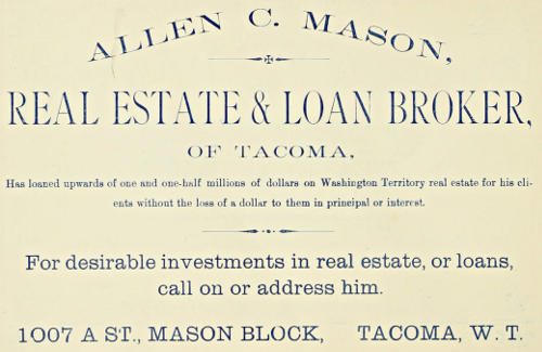 ALLEN C. MASON, REAL ESTATE & LOAN BROKER, OF TACOMA,