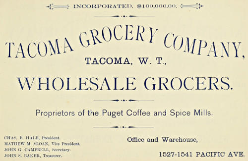 TACOMA GROCERY COMPANY, TACOMA, W. T., WHOLESALE GROCERS.