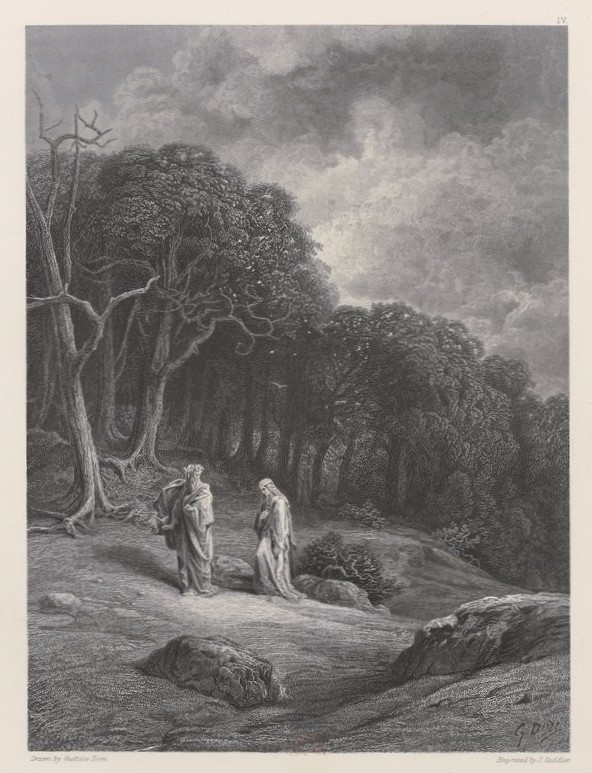 Pl. 4:Viviane suivit Merlin pendant toute la route, jusque dans le sauvage forêt de Broceliande.