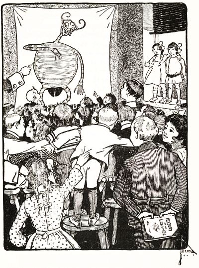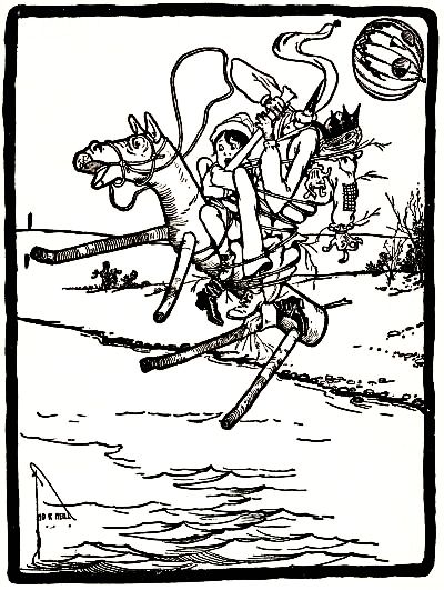 "Oh, let Jinjur be the Queen!" exclaimed Tip, ready to cry. "I want to stay a boy, and travel with the Scarecrow and the Tin Woodman, and the Woggle-Bug, and Jack—yes! and my friend the Saw-Horse—and the Gump! I don't want to be a girl!"