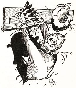 By the time this feat had been accomplished it began to grow dark, and Tip remembered he must milk the cow and feed the pigs. So he picked up his wooden man and carried it back to the house with him.