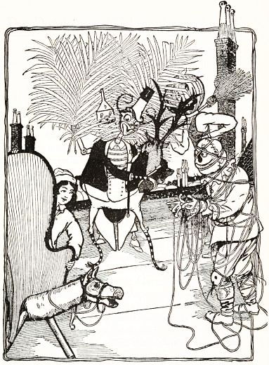 "Then," replied the Gump, "please take me to pieces. I did not wish to be brought to life, and I am greatly ashamed of my conglomerate personality. Once I was a monarch of the forest, as my antlers fully prove; but now, in my present upholstered condition of servitude, I am compelled to fly through the air—my legs being of no use to me whatever. Therefore I beg to be dispersed."
