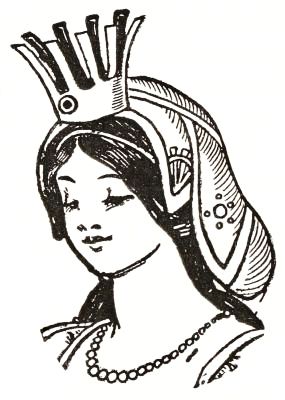 Glinda walked to the canopy and parted the silken hangings. Then she bent over the cushions, reached out her hand, and from the couch arose the form of a young girl, fresh and beautiful as a May morning. Her eyes sparkled as two diamonds, and her lips were tinted like a tourmaline. All adown her back floated tresses of ruddy gold, with a slender jeweled circlet confining them at the brow. Her robes of silken gauze floated around her like a cloud, and dainty satin slippers shod her feet.