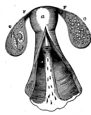 WHEN conception first takes place, an ovum is detached, which is carried through the fallopian tubes or oviduct, to the uterus, and has been observed in that organ by Sir E. Home, eight days after impregnation.