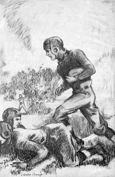 “Put some glue on your hands, Chick!” advised Tommy Parish in a clear, carrying voice from his seat in the front row of the stand. The sally gained a ripple of laughter from the somewhat apathetic audience. Bert Hollins, huddled under a blanket on the players’ bench, a few yards away, turned a mildly indignant countenance toward Tommy and was met with a wide grin and a jovial wink. Across the field, Chick Burton, right end, captured the trickling pigskin and tossed it disgustedly toward the referee. The disgust was natural, for Chick had just missed his third forward-pass in that quarter.
