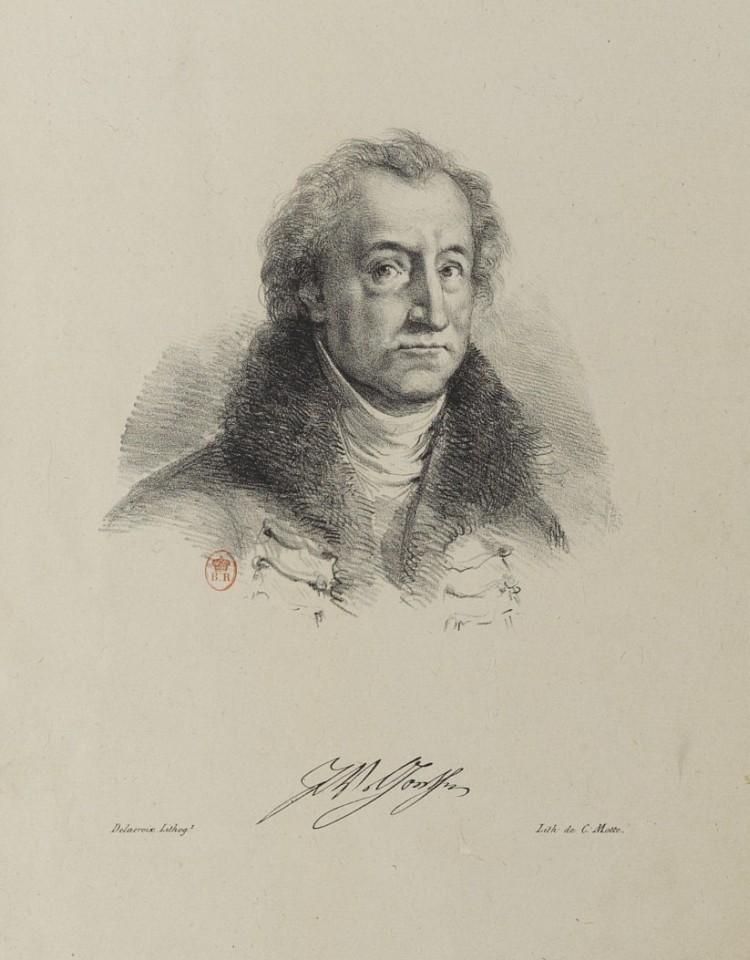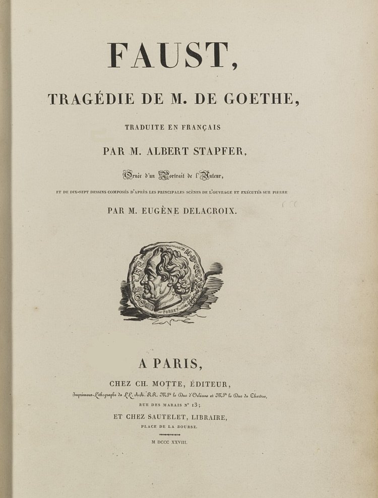 Nota. Le portrait de l'auteur de Faust, mis en tête du présent volume, a été exécuté par M. Delacroix d'après un croquis, fait à Weimar au commencement de l'année 1827, que M. de Goethe avait envoyé dans ce but à l'éditeur; et le nom inscrit au bas de ce portrait est un fac-similé exact de la signature d'une lettre de lui, écrite vers la même époque, dont on lira un passage dans la note 2.