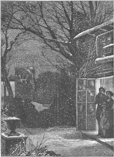 You join the group. A cold, moist air, full of films of snow, comes out of the dark night into the warm, bright room. The bells are running away; you might almost fancy them the sands, the last few grains of the Old Year’s life. Suddenly they stop, and in the breathing silence a deep clang falls from the church tower,—another,—ten more yet,—and the Old Year is dead.