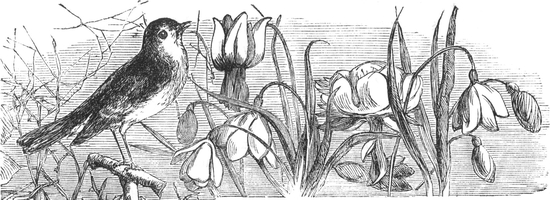 Anticipation. This is especially the dower of the young, if Regret be often the possession of the old. What a strange, glorious thing a New Year is to the child! Little of the feelings that I have been describing find place in the breast17 of the boy and girl, that were fast asleep and warm in their beds, while you and the bells were at conference: little of such musings trouble them, as they bound out of bed in the morning, and scuttle off in their night-gowns, patter patter, in a race, to be the first to wish father and mother a happy New Year. They are growing out of childhood: that is the joy for them: another of those vast periods has passed. Happy Spring, that does but long to shed and cast away her myriad white blossoms; and to rush on towards the full-grown Summer:—unknowing in the least, of the sober, misty, tear-strung, if fruitful, Autumn boughs! A happy New Year, little ones! Far be it from me to strip Spring boughs in order to imitate the Autumn which they cannot know! God keep you, my children; God teach you, and God bless you!