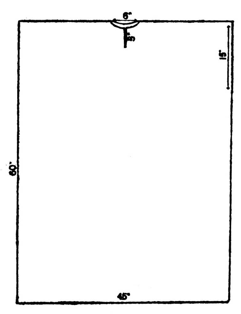Plate XVI. is a representation of Darius, King of Persia, sixth and fifth centuries B.C.; he is wearing the Median “Robe of Honour.” It will be seen from the plan (Fig. 40A) that this robe is sewn up each side, leaving a space of 20 inches on either side for the hands. Like the Egyptian robe, the material required is twice the height of the figure, the material is doubled, a neck-hole cut, and the garment is pulled on over the head. The Persian or Median method of wearing the garment is unique: a girdle is tightly bound round the waist, and then the robe is pulled up at either side over the girdle so as to produce the very elegant effect shown in Plate XVI. and Fig. 40, which is a modern drawing of the front view of Plate XVI., the result giving great freedom to the arms. The King seems to have two robes of the same cut, one under the other.