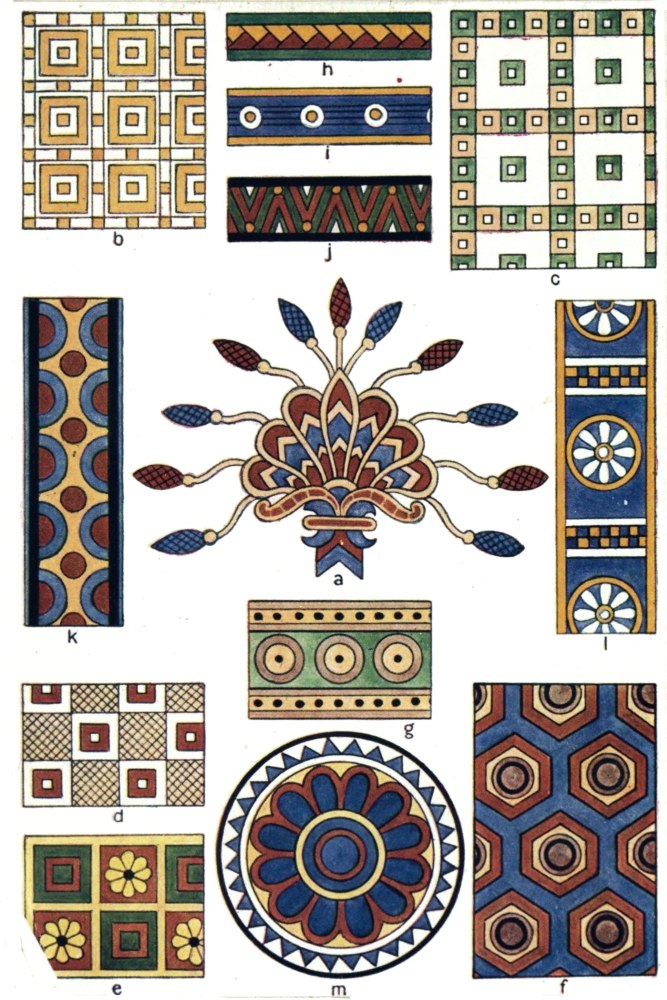 For Assyrian and Ancient Persian Styles consult: Layard’s “Monuments of Nineveh”; Flandin and Coste, “Voyage en Perse”; Botta, “Monuments de Ninïve”; Victor Place, “Ninïve et Assyrie”; Perrot and Chipiez, “History of Art in Persia”; Racinet, “Le Costume Historique”; Hottenroth “Le Costume”. Also reproductions and handbooks of the collections in the British Museum.