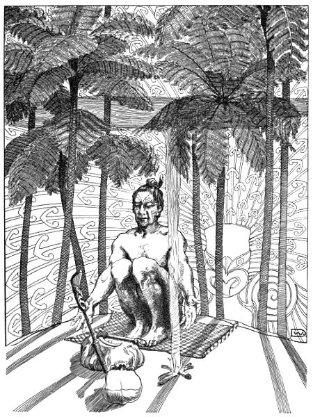 The dead chief was a Rangatira-Tohunga, and deep is the sorrow of his people from the mountains and his people from the lake. The women of his next relatives cut their breasts with sharp-edged shells, bleeding, and howling in their pain and sorrow.