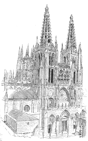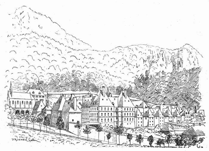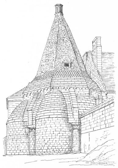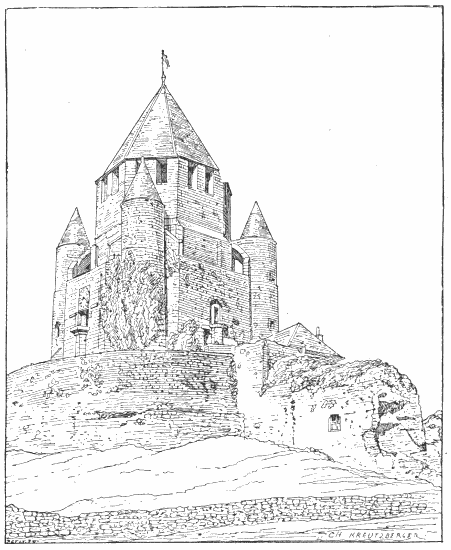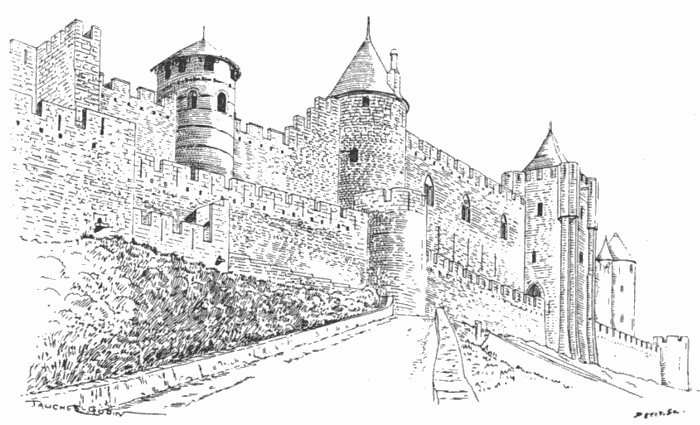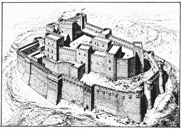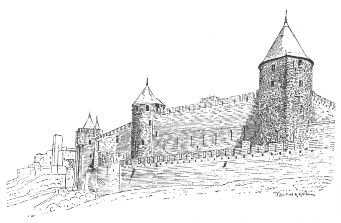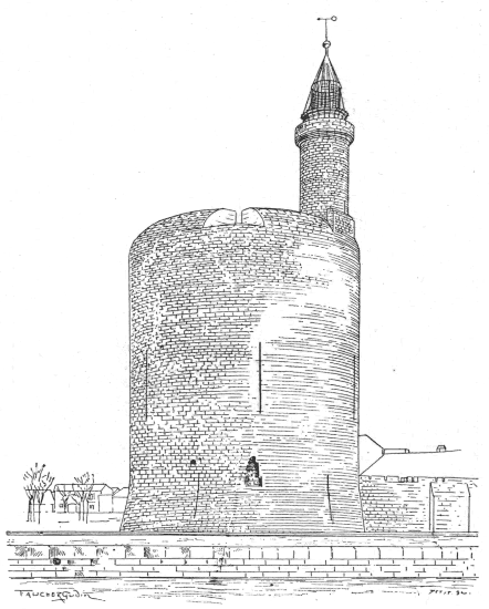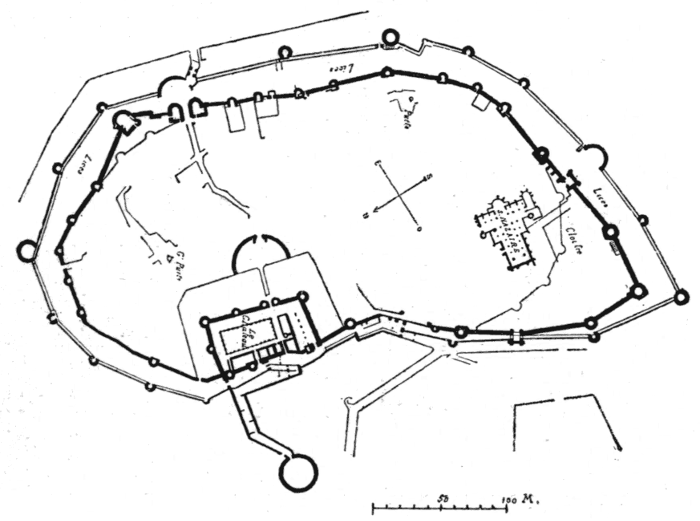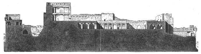 The whole building, which covers a very considerable area, was completed in less than sixty years. Its formidable mass was further strengthened by[387] the fortified enceinte of the town, some three miles in circumference.