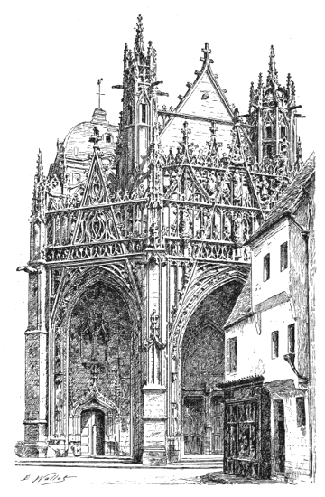 To the belfry of Amiens, which dates from the[376] thirteenth century, a square dome was added some hundred years ago. But the great bell of the fourteenth century has been preserved.