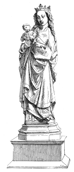 It was built between 1448 and 1463 by Mathieu de Layens, master mason of the town and its outskirts, and is a rectangular building of three stories. The gable ends are pierced with three rows of pointed windows, and adorned with a rich profusion of mouldings, statues, and sculptured ornament. The steep roof has four tiers of dormer-windows. The angles are flanked by graceful openwork turrets, with delicate pinnacles, and similar turrets receive the ridge of the roof at either end. The lateral façades are adorned with three rows of statues and allegorical sculptures, covering the whole with a wealth of exquisite tracery. Its lace-like delicacy has suffered considerably from the action of weather, and it was found necessary to renovate a considerable portion of the ornament in 1840.
