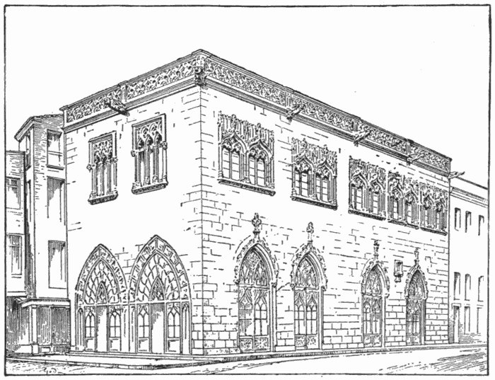 Markets, warehouses, and exchanges were often annexes of the town-halls. A few examples of such buildings have been preserved, but those of the third class are extremely rare. A specimen, remarkable both for construction and decoration, which recall the Spanish architecture of the fourteenth century, still exists at Perpignan. It is a house known as La Loge, built in 1396, which originally served as exchange to the cloth merchants of French Catalonia and Roussillon.