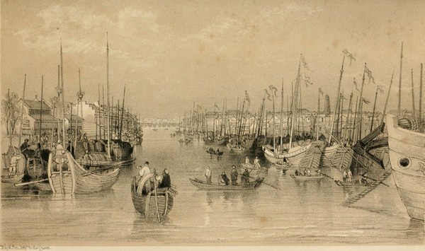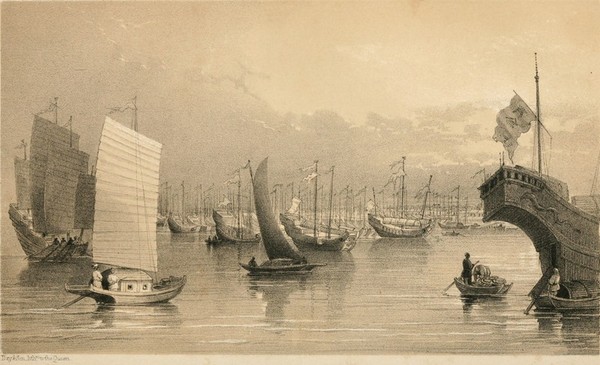 After a few hours' pleasant sailing amongst the islands, we at last reached the beautiful bay of Hong-kong, and anchored opposite to the new town of Victoria. Hong-kong bay is one of the finest which I have ever seen: it is eight or ten miles in length, and irregular in breadth; in some places two, and in others six miles wide, having excellent anchorage all over it, and perfectly free from hidden dangers. It is completely sheltered by the mountains of Hong-kong on the south, and by those of the main land of China on the opposite shore; land-locked, in fact, on all sides; so that the shipping can ride out the heaviest gales with perfect safety.