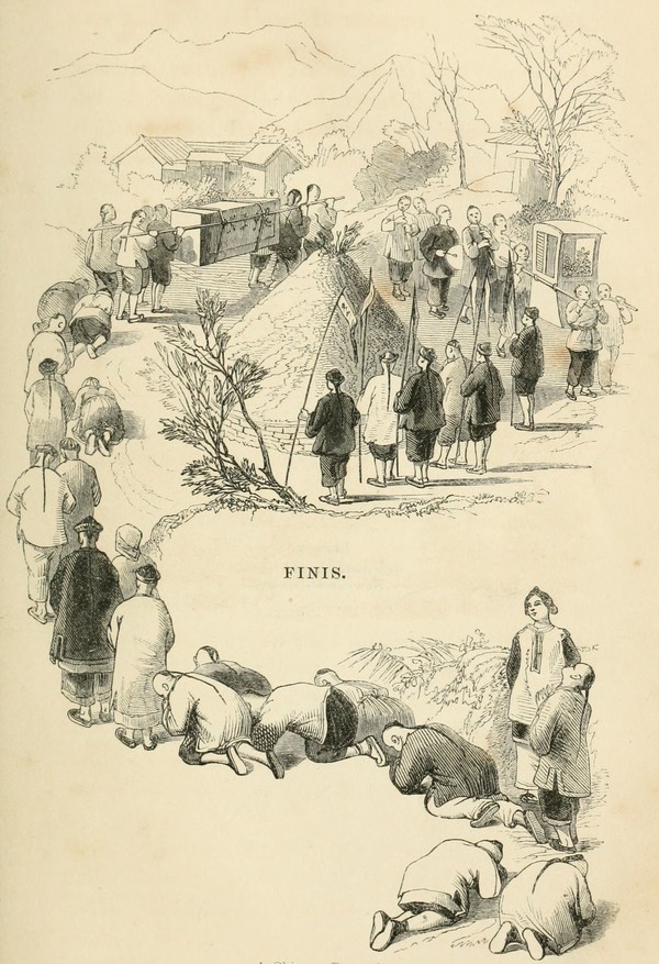 Although I have considered it necessary to expose in this manner the prejudiced opinions which have been from time to time given out to the world by authors on China, I am far from having any prejudice against the Chinese people. On the contrary, [Pg 10]in many respects they stand high in my estimation. During the last three years I have been continually among them; wandering over and among their hills, dining in their houses, and sleeping in their temples: and from this experience I do not hesitate in pronouncing them a very different race from what they are generally supposed to be. The natives of the southern towns, and all along the coast, at least as far north as Chekiang, richly deserve the bad character which every one gives them; being remarkable for their hatred to foreigners and conceited notions of their own importance, besides abounding in characters of the very worst description, who are nothing less than thieves and pirates. But the character of the Chinese as a nation must not suffer from a partial view of this kind; for it must be recollected that, in every country, the worst and most lawless characters are amongst those who inhabit sea-port towns, and who come in contact with natives of other countries: and unfortunately we must confess that European nations have contributed their share to make these people what they really are. In the north of China, and more particularly inland, the natives are entirely different. There are doubtless bad characters and thieves amongst them too: but generally the traveller is not exposed to insult; and the natives are quiet, civil, and obliging. And although they are not entitled to the credit of being equal to, much less in advance of the nations of the West in science, in the arts, in government, or [Pg 11]in laws; yet they are certainly considerably in advance of the Hindoos, Malays, and other nations who inhabit the central and western portions of Asia. Besides, the manners and customs of the people, and the strange formation of the country, are indeed striking when viewed by the stranger's eye;—the pagodas, like monuments to departed greatness, towering on the hills; the strange dresses and long tails of the men, and the small deformed feet of the women. Added to which, this is the land of tea,—a beverage which in the eyes of Englishmen is enough to immortalise any country, had it nothing else besides. But I must again assert, that the great secret of the popularity of China, and the Chinese people, lies in the manner in which foreigners allowed themselves to be treated in former days, and in the mystery with which the Chinese, from principle, enveloped every thing relating to their country.