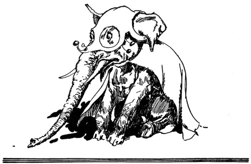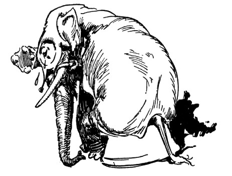 "A foot," roared the Elegant Elephant, throwing back his head. "Oh, come now, I couldn't have grown a foot without noticing it, and I still have but four—here, count 'em! Say, who in hay bales gave you that black eye?"