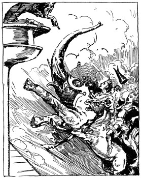 Now nowhere but in Oz could an elephant talk, much less come hammering on the doors of a royal castle, but in Oz, as we very well know, animals talk and act as sensibly as people, which makes Oz about ten times as exciting as any other country on the map. But while I've been explaining all this, Randy had run down the steps and was half-way across the courtyard.