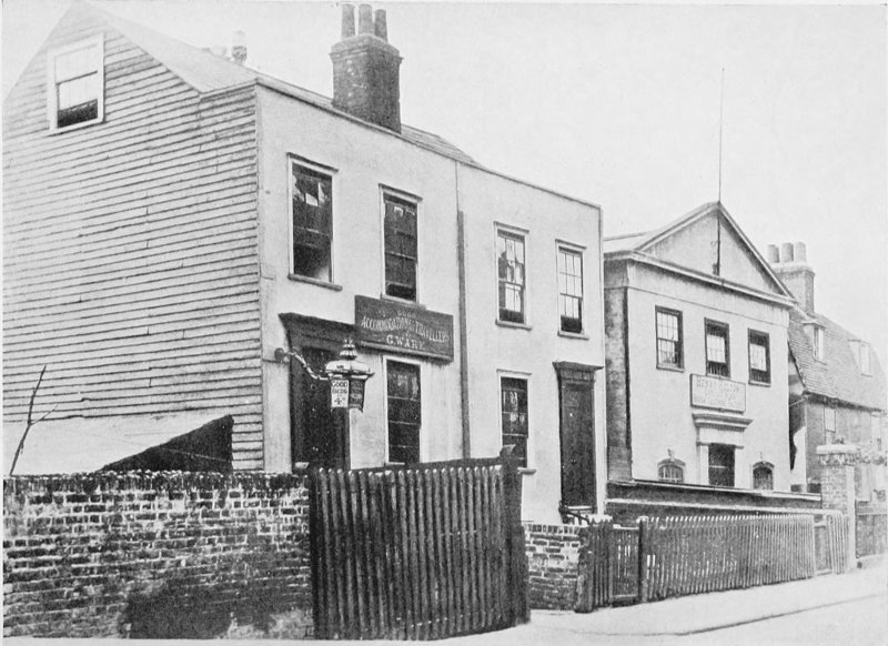 John Dickens had by nature a very generous 14 disposition, which inclined him to be too lavish in his expenditure. This idiosyncrasy, coupled with the ever-increasing demands of a young and growing family, compelled him to realize the immediate necessity for retrenchment. Hitherto his income (ranging from £200 to £350 per annum) amply sufficed to provide for the comfort of wife and children; but the time had arrived when rigid economy became imperative, and early in 1821 he removed into a less expensive and somewhat obscure habitation at No. 18, St. Mary’s Place (otherwise called “The Brook”), Chatham, situated in the valley through which a brook (now covered over) flows into the Medway. The house on “The Brook,” with a “plain-looking whitewashed plaster front, and a small garden before and behind,” still exists; it is a semi-detached, six-roomed tenement, of a much humbler type than that in Ordnance Terrace, and stands next to what is now the Drill Hall of the Salvation Army, but which, in John Dickens’s time, was a Baptist meeting-house called Providence Chapel. While the Dickens dwelling-place remains unaltered, the neighbourhood has since greatly deteriorated. The locality was then more rural and not so crowded as now, many of the people living there being of a quite respectable class. The minister then officiating at Providence Chapel was William Giles, whose son William had been educated at Oxford, and afterwards kept a school in Clover Lane (now Clover Street, the playground since covered by a railway station), Chatham, whence he moved to larger premises close by, still to be seen at the corner of Rhode Street and Best Street. Both Charles and his elder sister Fanny attended here as 15 day scholars, and the boy, under Mr. Giles’s able tuition, made rapid progress with his studies. Apropos of Mr. Giles, it should be mentioned that when his intelligent pupil had attained manhood and achieved fame as the author of “Pickwick,” his old schoolmaster sent him, as a token of admiration, a silver snuff-box, the lid bearing an inscription addressed “To the Inimitable Boz.” For a considerable time afterwards Dickens jocosely alluded to himself, in letters to intimate friends, as “the Inimitable.” By the way, where is that snuff-box now?