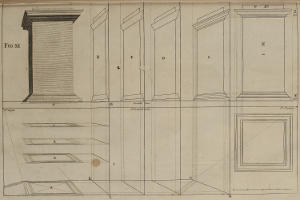 III. That from the Disposition of the Perspective-Plans and Uprights, with respect to the finish’d Pieces in the Twelfth and many following Figures, you would observe, with what Dispatch the said Pieces may, without the Help of Compasses, be delineated by your Drawing-Square; viz. the Perpendiculars from the Perspective-Plan, and the level Lines from the Perspective-Upright, or Section.