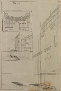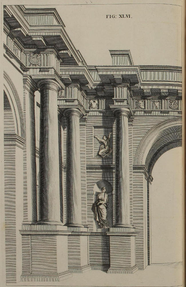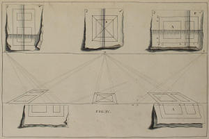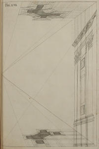 This Author’s great Experience in the Practice of Perspective, having furnish’d him with excellent RULES for Shortning the Work, and Obviating the foremention’d Difficulties; he has here very generously imparted them, and especially the latter, in the Tenth and Eleventh Figures. And tho’ on Perusal of the first three or four Plates, this Method may possibly seem the same that some others have before made use of; yet whoever shall diligently observe and copy the Rules and Examples of the succeeding Figures, must necessarily acknowledge the great Advantage this has in a Perspective-Plan and Upright, clear and distinct; whence the finish’d Piece is deduc’d, without the least Incumbrance of the Work. The Explanations of the Rules here given, are short and instructive; and the Architectonical Designs produc’d to exemplify them, Noble and Magnificent.