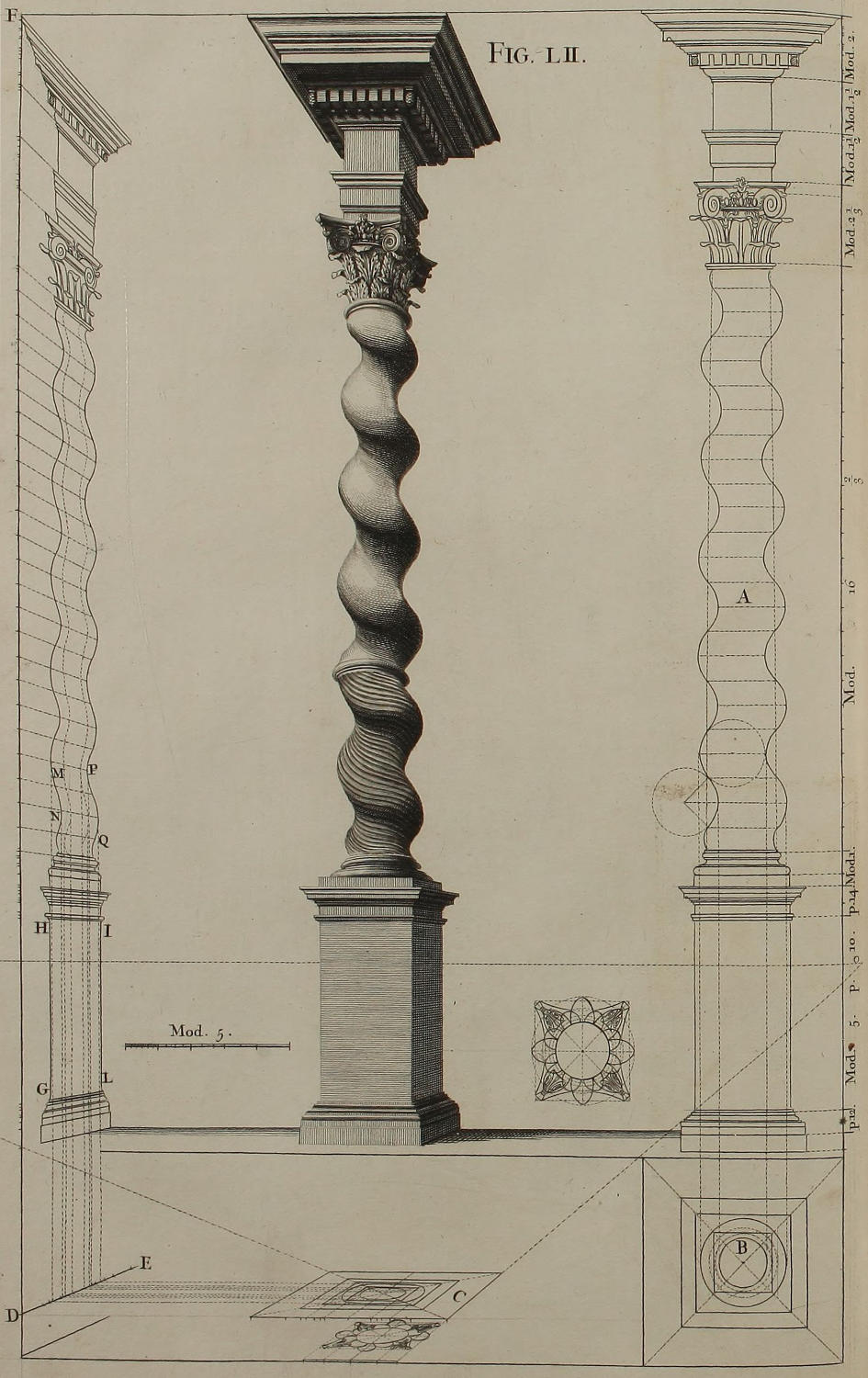 | Delineatio columnæ spiralis Ordinis Compositi, | LII. | The Description of a wreath’d Column of the Composite Order. |