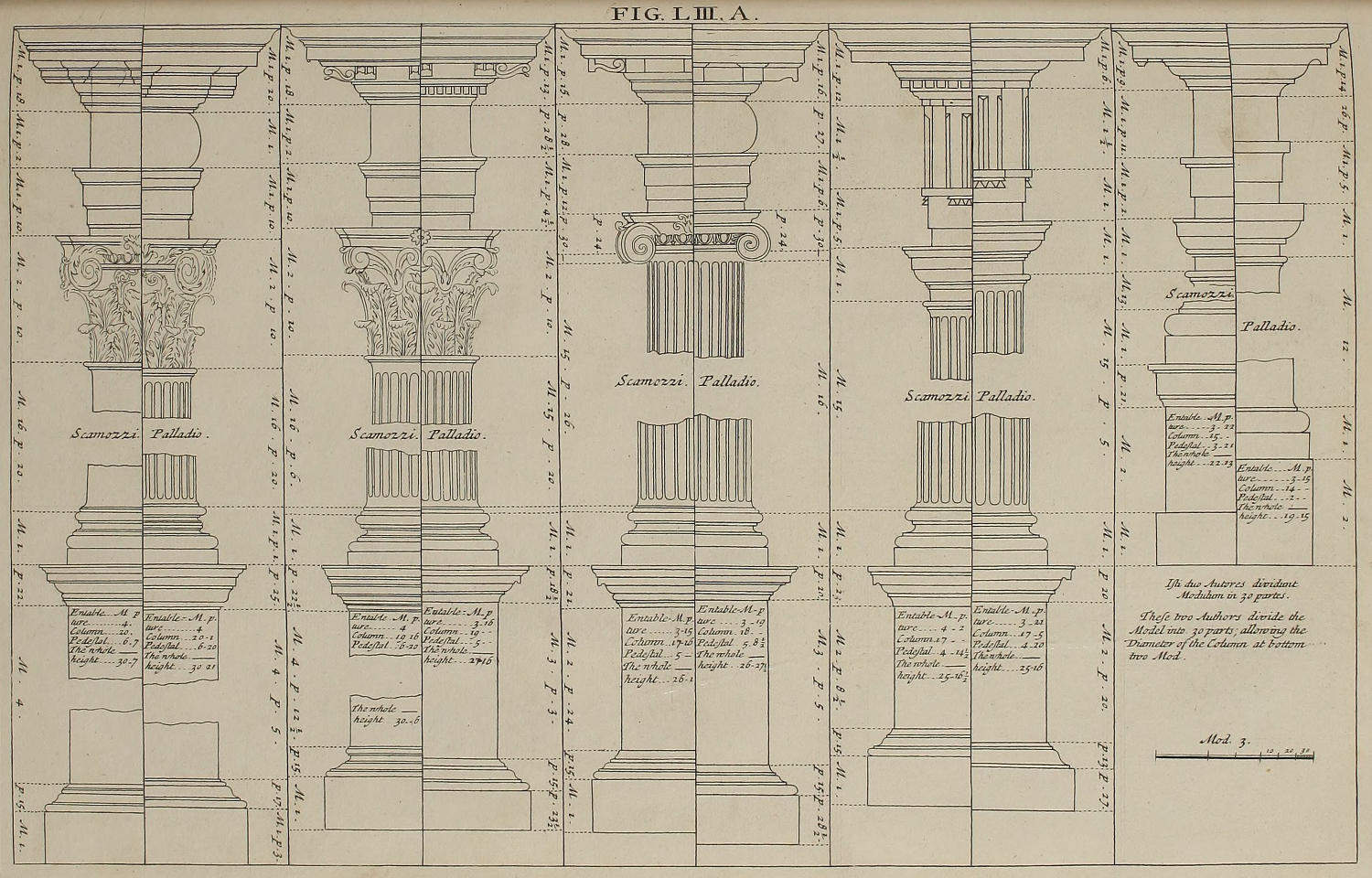 | Ordines Architecturæ desumpti ex Palladio & Scamozzio, | LIII. A. | The Orders of Architecture taken from Palladio and Scamozzi. |
