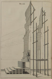 | Elevatio scenarum coram inspectarum; ubi docetur artificium, ut scenæ obliquæ appareant rectæ, | LXXV. | The Elevation of Scenes in Front, and how the oblique Scenes are made to appear direct. |