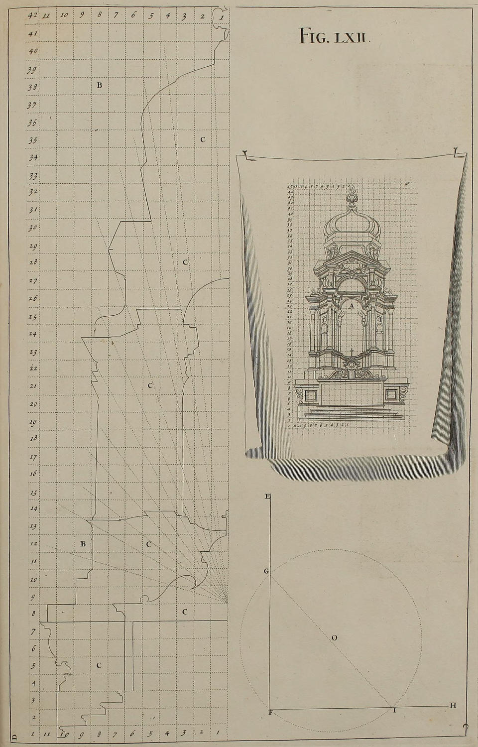 | Projectio ædificii rotundi, | LXVI. | A Circular Design in Perspective. |