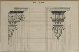 | Capitella Corinthia horizontaliter contracta, | LXXXIII. | A Corinthian Capital in horizontal Perspective. |
